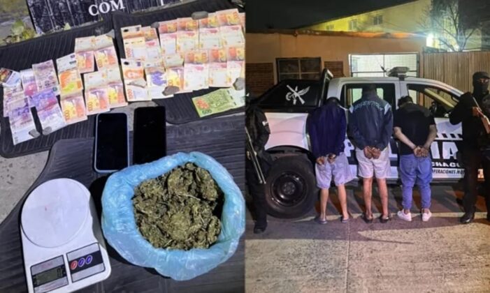 Los detenidos tienen 20, 21 y 22 años. En la requisa, al joven de 20 años se le encontró una bolsa de polietileno escondida en la cintura, con una sustancia vegetal que fue sometida a pruebas por la Dirección General de Consumos Problemáticos. Se confirmó que se trataba de marihuana, con un peso total de 498 gramos. También se incautaron $20.500 en efectivo y un teléfono iPhone.