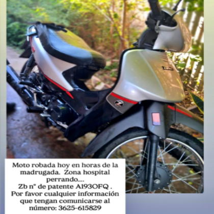 Se solicita a la comunidad que, ante cualquier dato que pueda ser de utilidad, lo comuniquen al celular de la damnificada: 3625615829 o bien, a las autoridades policiales.