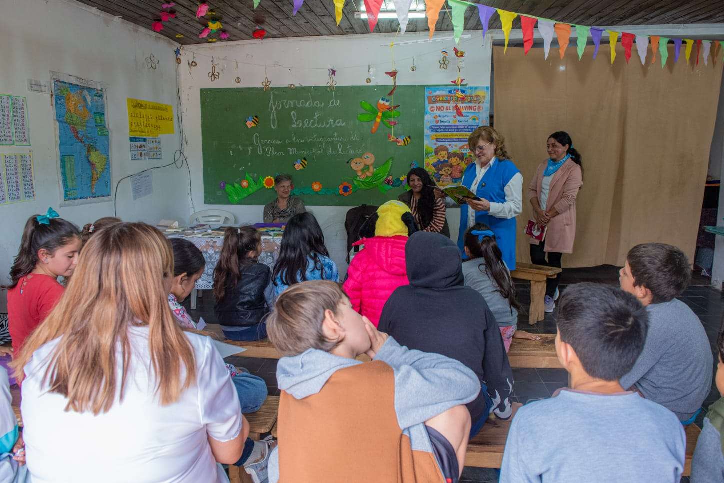 En la oportunidad participaron como lectoras voluntarias Ángeles Gómez, Bella Curin, Yanina Mirón y Alicia Lips, quienes compartieron cuentos, leyendas y adivinanzas con los niños presentes.