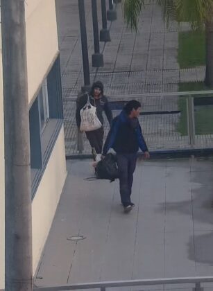 Ese mismo día, a las 08:32, dos individuos fueron vistos saliendo del edificio de la Universidad en calle 12 y 15, Ensanche Sur, cargando objetos de dudosa procedencia. Al tratarse de un sábado sin actividad académica, se activó el protocolo de seguridad. Los sospechosos fueron detenidos y puestos a disposición de la justicia.