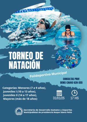 El próximo 31 de enero, a las 17 horas, el Polideportivo Municipal de Presidencia Roque Sáenz Peña será escenario del esperado Torneo de Natación, organizado por la Secretaría de Desarrollo Humano y Deportes de la municipalidad.