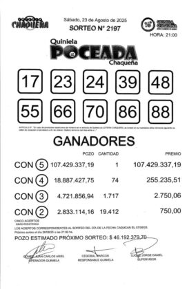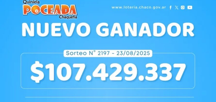 Un vecino de Resistencia acertó los cinco números del pozo acumulado de la Poceada Chaqueña, llevándose un premio de $107.429.337,19.