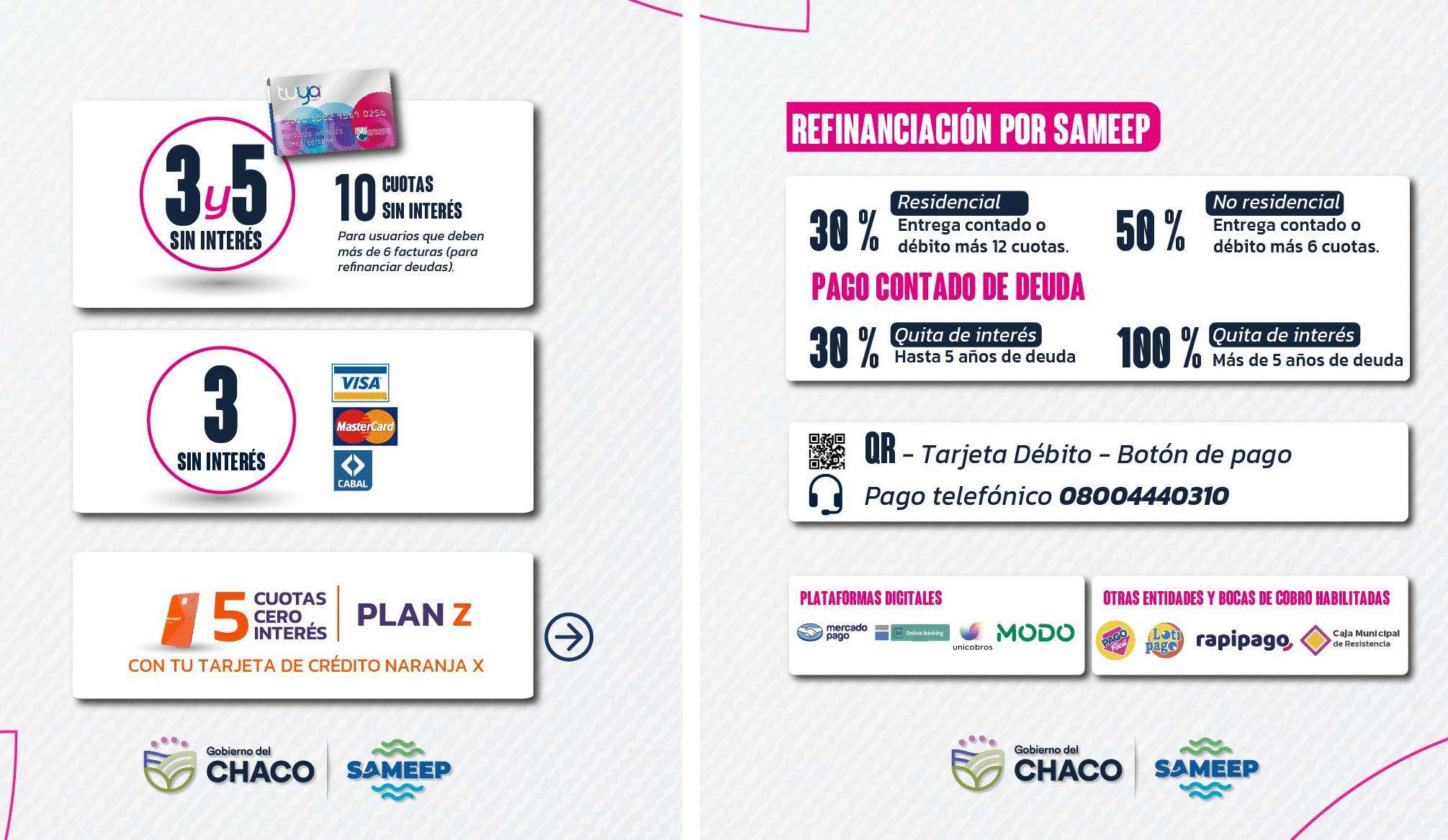 La empresa estatal Sameep anunció la implementación de nuevos planes y modalidades de pago destinados a facilitar la regularización de deudas y el mantenimiento del servicio en toda la provincia.