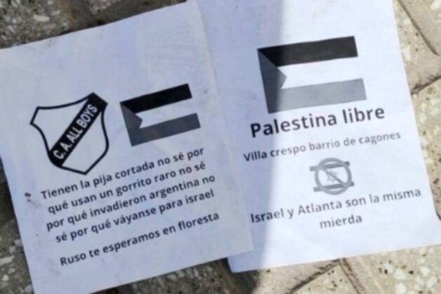 Los incidentes comenzaron en la previa del partido, cuando hinchas encapuchados trasladaron un cajón con banderas de Atlanta e Israel, flamearon insignias de Irán y Palestina, y repartieron cánticos ofensivos contra la comunidad judía. Durante el encuentro, que finalizó 0-0, un dron con la bandera de Palestina sobrevoló el campo mientras se entonaban cánticos como “el que no salta es de Israel”. Además, apareció un pasacalles que decía: “Muerte al estado genocida de Israel”.