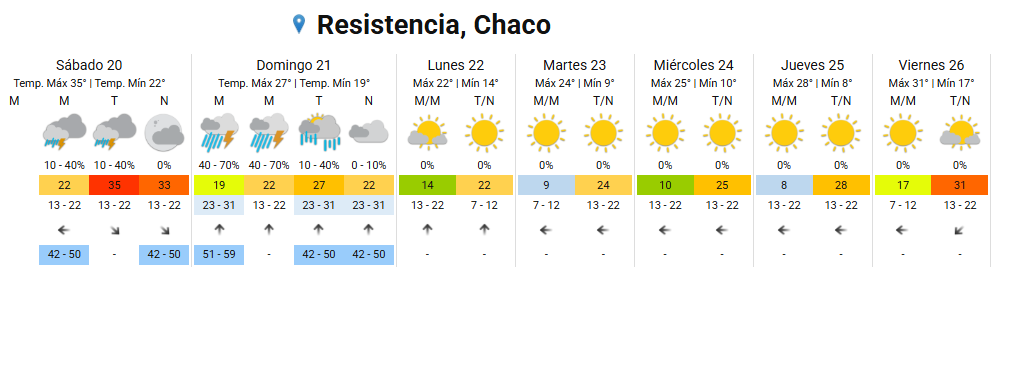 El Servicio Meteorológico Nacional (SMN) anticipa para este sábado una jornada marcada por la inestabilidad climática en la capital chaqueña, con tormentas intermitentes, temperaturas extremas y elevados niveles de humedad.