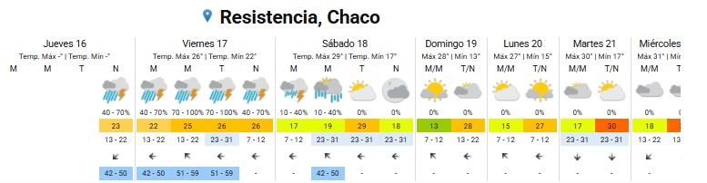 El Servicio Meteorológico Nacional (SMN) renovó este jueves el alerta por tormentas fuertes para la provincia del Chaco. Se esperan lluvias intensas desde la noche de este jueves. Las condiciones comenzarán a estabilizarse recién a partir del sábado.
