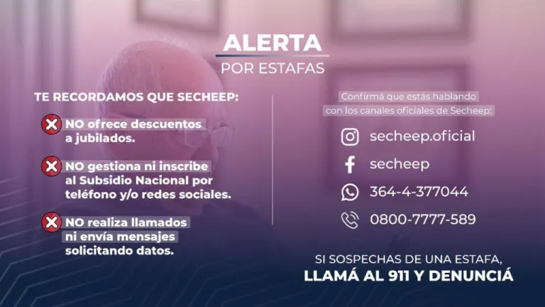 “Queremos que nuestros usuarios estén informados y protegidos. Secheep no ofrece descuentos a jubilados ni solicita datos personales por teléfono o redes. Reiteramos la importancia de no responder a estos llamados fraudulentos”, señaló la empresa.