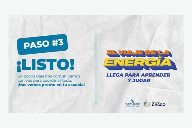 “El Viaje de la Energía” es una propuesta educativa e interactiva que formará parte de la Feria Provincial de Ciencia 2025, organizada por el Ministerio de Educación, Cultura, Ciencia y Tecnología del Chaco, y se llevará a cabo el próximo martes 26, comenzando a las 9, en el Domo del Centenario “Zitto Segovia” de Resistencia (avenida de los Inmigrantes 300). El stand de SECHEEP se ubicará en el área 3 de Espacios Exteriores (Gazebos, Galerías y ATM) del evento. Esta iniciativa es parte del programa “Chaco Energético y Sustentable”.