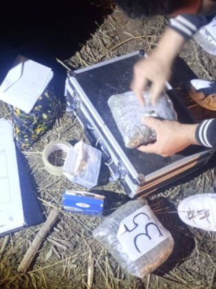 Los agentes se acercaron al lugar y procedieron a inspeccionar los bultos abandonados, encontrando en su interior una sustancia vegetal con características similares al cannabis sativa.