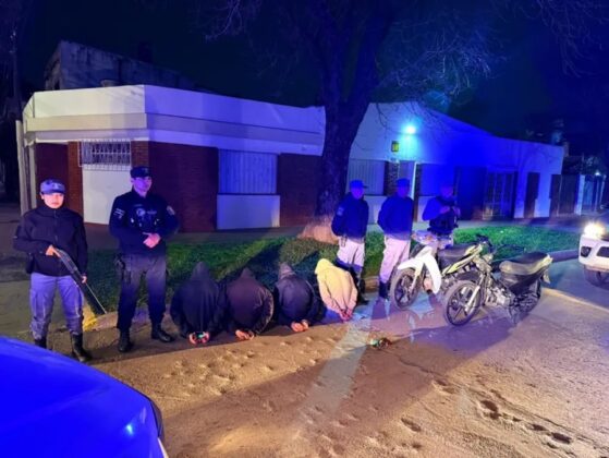 Durante la madrugada de este miércoles, un grupo de cuatro hombres circulaba a gran velocidad en motocicleta cuando fueron vistos por la policía de la Comisaría Novena en la intersección de la avenida Almirante Brown y Viuda de Ross, en Resistencia. Al percatarse del operativo, desprendieron un objeto del vehículo e intentaron escapar, lo que llevó a los agentes a iniciar una persecución que culminó en la avenida Alberdi y Haití, con el apoyo de la Comisaría Primera.