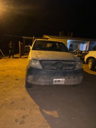 En la zona rural conocida como Picada Eta y Barilari, a unos 140 kilómetros de Taco Pozo, los agentes interceptaron una Toyota Hilux (dominio FZG350) conducida por un hombre de 46 años, identificado como R. A., jornalero y domiciliado en el paraje Altagracia.