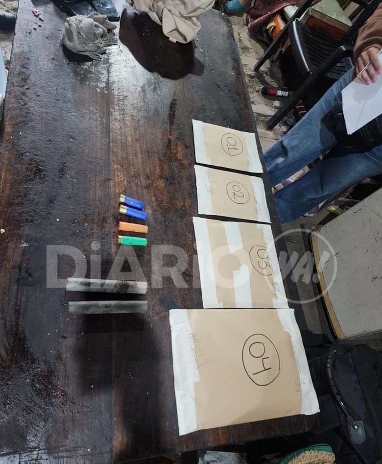 Durante la requisa en el domicilio del sospechoso, los efectivos lograron el secuestro de elementos de alto valor para la causa: una Netbook; tres teléfonos celulares; cuatro cartuchos percutados calibre 12/70; dos tubos de metal, que serían partes constitutivas de un arma de fuego de fabricación casera («tumbera»).