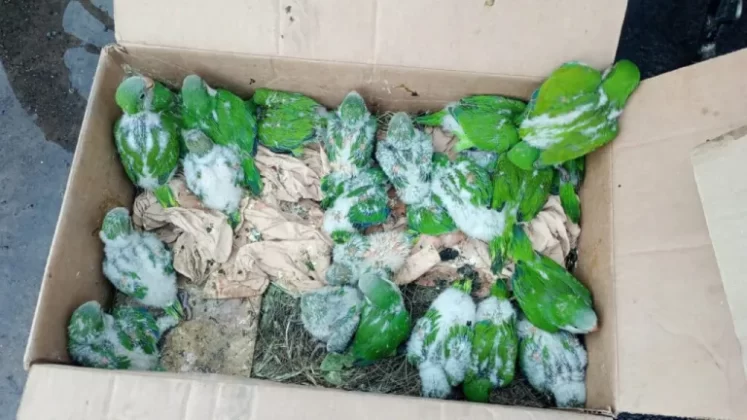 Secuestraron más de 40 loros que eran trasladados en una moto