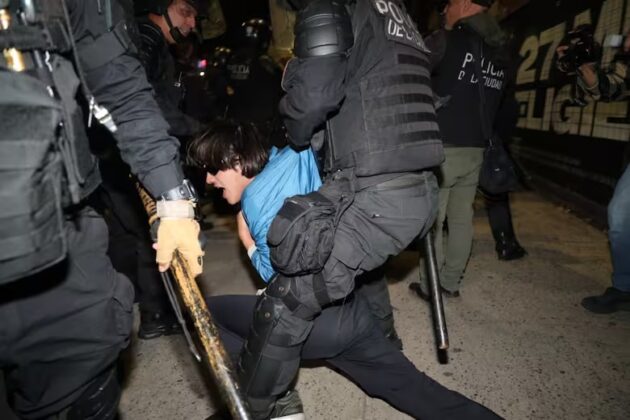 Fuera del estadio, el clima fue tenso: hubo enfrentamientos entre militantes libertarios y grupos opositores, así como incidentes con la policía. Varias personas resultaron demoradas.