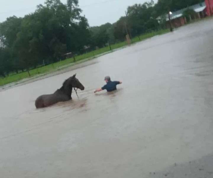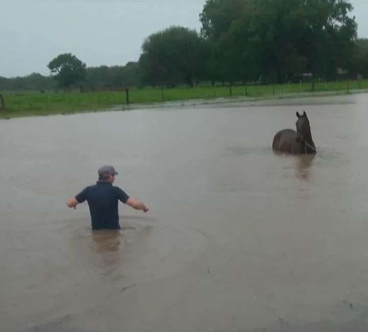 Simultáneamente a las tareas de asistencia en el barrio San Pablo, las autoridades fueron informadas sobre otra situación crítica a la vera de la Ruta Provincial N° 3. Dos caballos que se encontraban atados en la banquina corrían riesgo de ahogamiento debido al rápido ascenso del nivel del agua causado por las lluvias torrenciales.