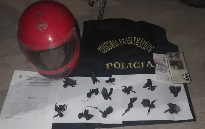 Personal antidroga realizaba controles vehiculares e identificación de personas en la avenida Juana Azurduy al 3600, en el barrio Don Santiago, durante las primeras horas de la noche, los efectivos detubieron la marcha de un sujeto de 27 años, que se desplazaba en motocicleta y al ser interrogado se mostro nervioso, al interpretar esa actitud los funcionarios del orden le solicitaron exibiera sus pertenencias. Al solicitarle que se quitara el casco de seguridad, los agentes descubrieron que llevaba 14 dosis de marihuana en su interior.