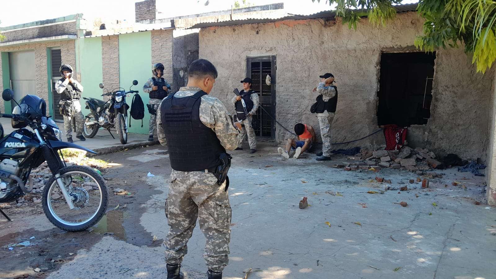 Al llegar al lugar, los agentes individualizaron a una persona con las características descriptas. Al intentar identificarlo, el sospechoso reaccionó de forma hostil y agredió a los uniformados con golpes y patadas en un intento de fuga. Ante esta situación, el personal debió hacer uso de la fuerza medida para reducirlo y colocarle las esposas de seguridad.