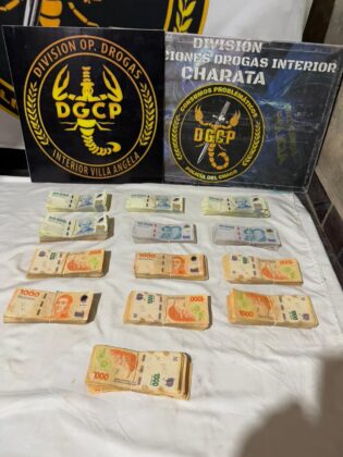 Uno de los allanamientos se dio por calle Pasteur entre Santiago del Estero y La Rioja. Allí los agentes incautaron un frasco con más de 10 gramos de marihuana, un celular, 1.200 dólares, 309.000 pesos en efectivo, un picador, dos cucharas con restos de cocaína y varios recortes de nylon. En este lugar, un joven de 24 años fue aprehendido.