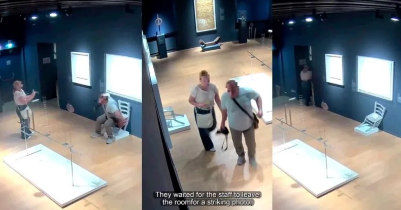 Una pareja causó daños a la escultura conocida como la «silla de Van Gogh» en un museo italiano, un incidente que ocurrió en abril en el Palazzo Maffei de Verona. Las imágenes del suceso fueron divulgadas recientemente por las autoridades del museo.