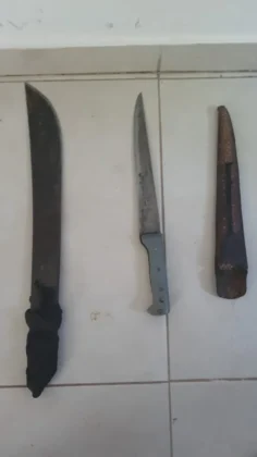 Tras el hecho, se desplegó un operativo que permitió identificar y detener a los sospechosos, quienes quedaron alojados en la comisaría local. Durante el procedimiento, la Policía secuestró distintos elementos vinculados al caso, entre ellos dos cuchillos —uno tipo machete y otro tipo carnicero—, gomeras, balines, piedras y un trozo de ladrillo.