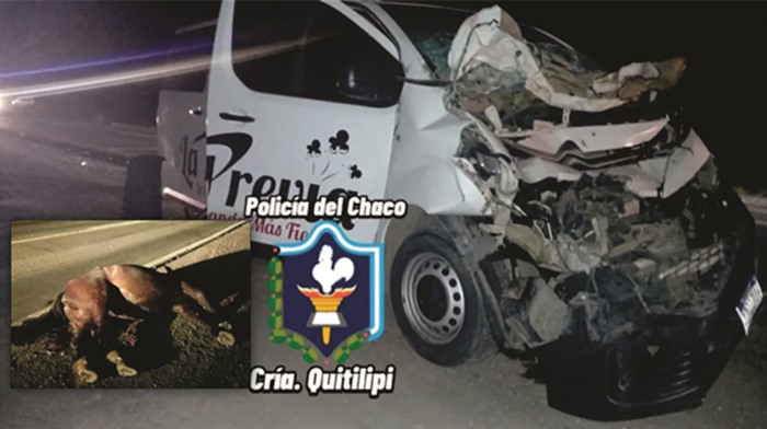 La noche del jueves, alrededor de las 21:30, se registró un accidente de tránsito en la Ruta Nacional 16, cerca del cruce con la Ruta Provincial 4, en cercanías de Quitilipi. Una combi perteneciente al grupo «La Previa» colisionó con un caballo que se encontraba suelto sobre la calzada.