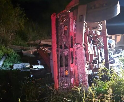 Un camión cargado de madera cayó bajo un puente en Cote Lai tras reventarse una rueda