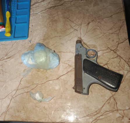 En el lugar también se procedió al secuestro de armas y municiones, entre ellas una pistola calibre 22 sin marca ni número de serie visible, un rifle de aire comprimido con cañón adaptado para cartucho calibre 22 y diez cartuchos del mismo calibre.