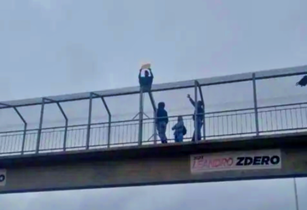 El episodio ocurrió pasadas las 11. Un hombre de 36 años subió al tejido del puente, con un cartel de cartón entre sus manos, con aparentes intenciones de arrojarse al vacío, lo que motivó la rápida intervención policial.