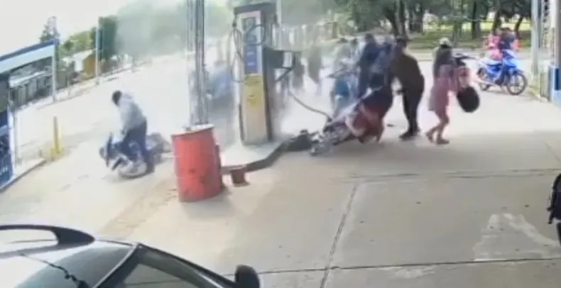 El incidente ocurrió mientras varios motociclistas estaban llenando sus tanques de combustible. La rápida actuación de un automovilista evitó una tragedia.