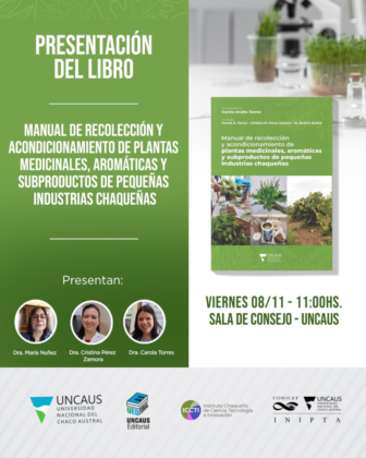 El “Manual de Recolección y Acondicionamiento de Plantas Medicinales, Aromáticas y Subproductos de Pequeñas Industrias Chaqueñas», se presentará el día viernes 08 de noviembre, a las 11 horas, en Sala de Consejo de la Universidad.