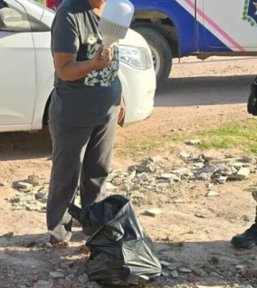 En un momento determinado, al observar por las cámaras cómo los ladrones trepaban postes de alumbrado público para robar las lámparas, los vecinos tomaron acción y lograron atrapar a uno de ellos. Una vecina que participó en el plan mostró un foco de alumbrado público capturado del intruso retenido.