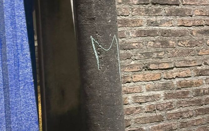 La denuncia fue realizada por L.C. , de 27 años, quien informó que alrededor de las 22:30 al regresar a su domicilio observó en el poste de luz de su vereda varias señales hechas con tiza: una letra “M”, una marca en forma de «X» y la figura de medio corazón. La joven señaló que durante el día la casa queda a cargo de su marido y por la noche bajo su cuidado, aunque aclaró que no sospecha de ninguna persona en particular.
