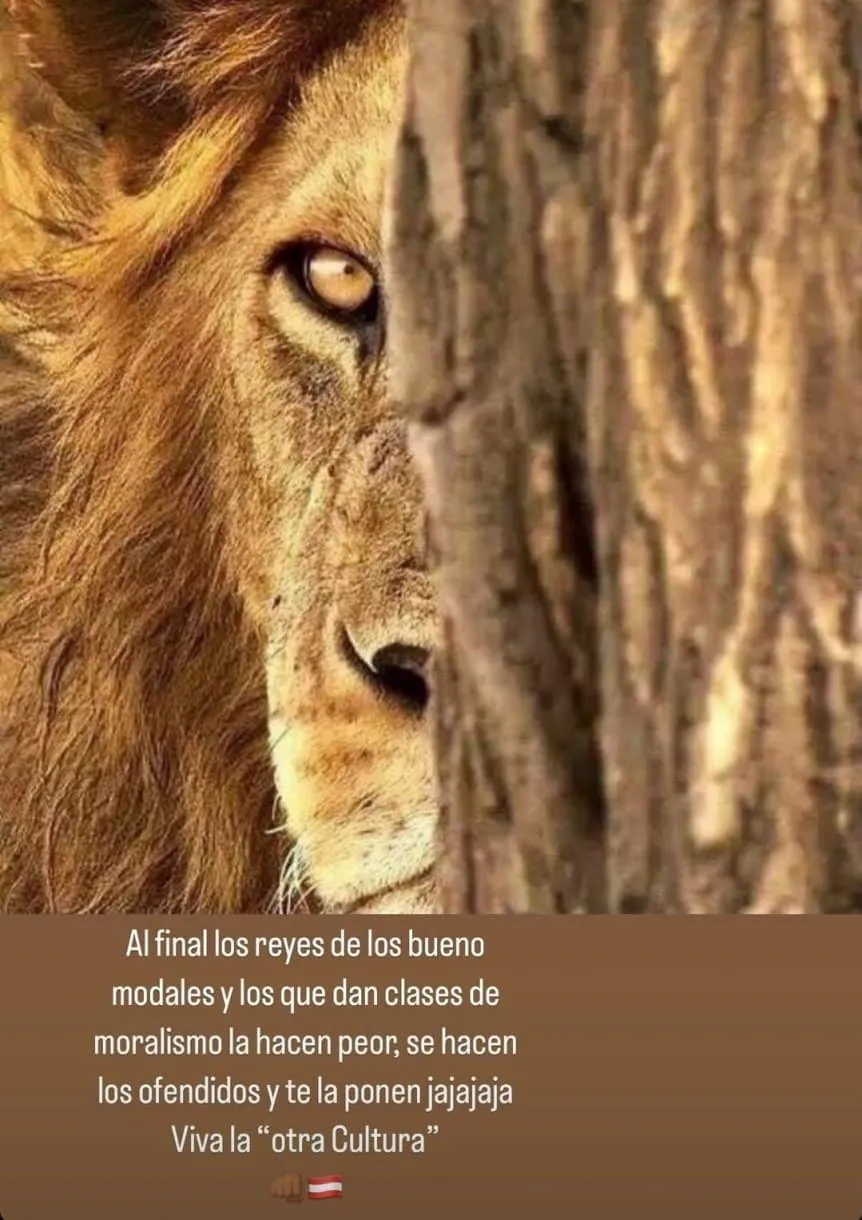 “Al final, los reyes de los buenos modales y los que dan clases de moralismo la hacen peor: se hacen los ofendidos y te la ponen. Viva la ‘otra cultura’”, escribió Verón en una historia de Instagram, sin nombrar directamente a Gallardo ni a Jorge Brito, pero en clara alusión a ambos.