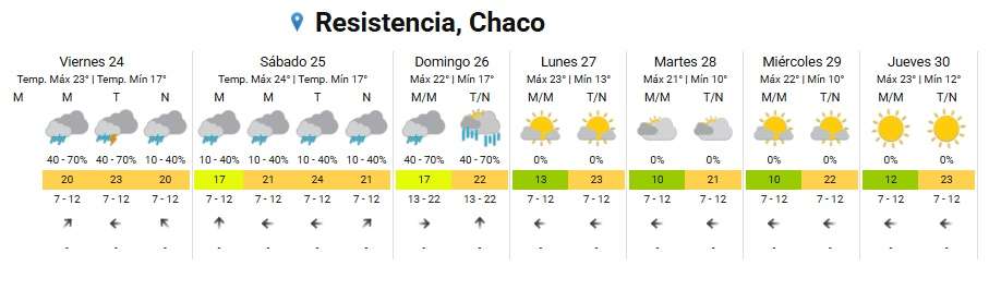 Viernes lluvioso en Resistencia: persiste la inestabilidad y se prevé un descenso de temperatura hacia el fin de semana
