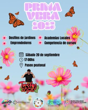 La Municipalidad de Puerto Vilelas, conducida por el intendente Marcelo “Colo” González, invita a toda la comunidad a participar de la gran Fiesta de la Primavera 2025, que se realizará el sábado 20 de septiembre a las 17 horas en el Paseo Peatonal, con desfiles de jardines, presentaciones de academias locales, competencia de cursos, feria de emprendedores y el show central de Tonchy y la Banda del Gallo.