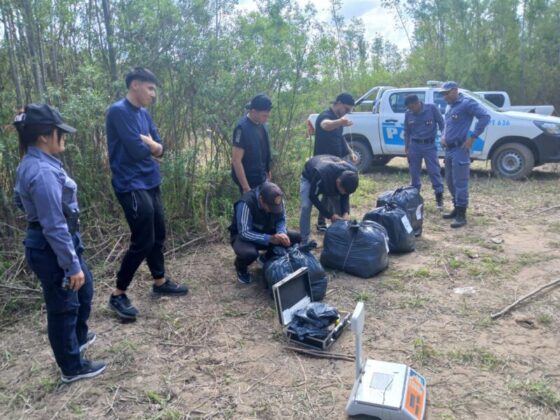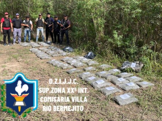 Luego del enfrentamiento armado ocurrido el sábado por la noche en la ribera del río Bermejito, efectivos de la policía chaqueña realizaron un operativo de rastrillaje que culminó con el hallazgo de 57,4 kilogramos de marihuana en una zona boscosa de difícil acceso.