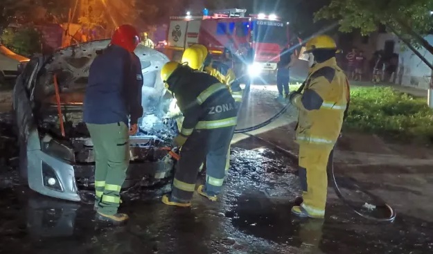 De acuerdo con el parte policial, alrededor de las 21:45 se recibió un aviso por disparos y un vehículo en llamas. Al llegar al lugar, personal de Bomberos y agentes de la Comisaría Séptima Metropolitana lograron extinguir el incendio que afectaba un Chevrolet Cruze.