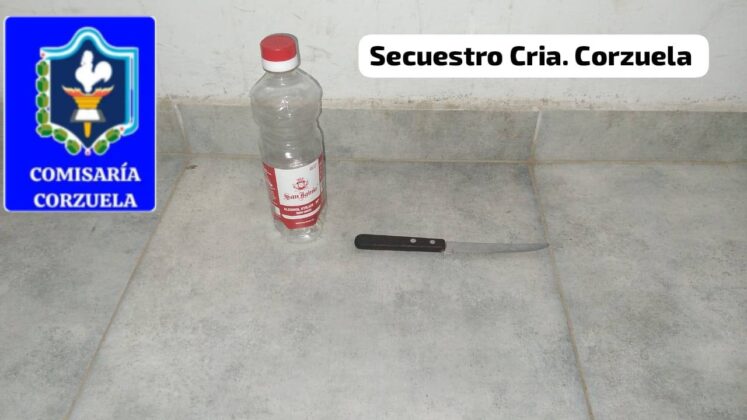 Durante el procedimiento se secuestraron un cuchillo tipo sierrita y una botella de alcohol etílico de 500 cm³, elementos que fueron incorporados a la causa como posibles pruebas del hecho.