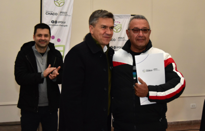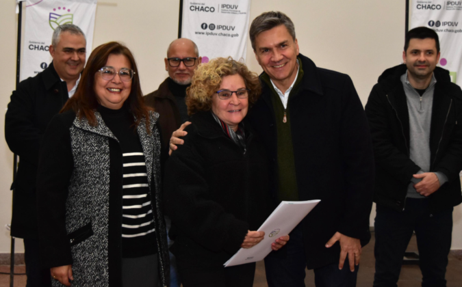 El gobernador Leandro Zdero entregó, títulos de propiedad a 60 familias de los barrios Fonavi, Alborada, Federal y CGT de Presidencia Roque Sáenz Peña. Lo acompañaron el presidente del Instituto Provincial de Desarrollo Urbano y Vivienda (IPDUV) Fernando Berecoechea y el intendente Bruno Cipolini. “Decidimos dar tranquilidad a la gente de tener su título, estamos muy contentos por dar respuesta ante tanto tiempo de espera de las familias, desde el inicio de nuestra gestión ya entregamos 3.400 títulos y seguiremos trabajando en esto”, expresó el primer mandatario provincial.