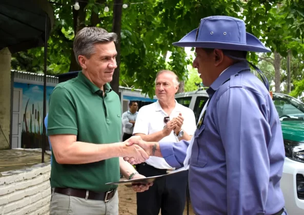 El gobernador Leandro Zdero encabezó este viernes la entrega de una camioneta Toyota Hilux 4×4 destinada a la División de la Policía Rural de Barranqueras. El acto se realizó en la Granja Educativa La Josefina, acompañado por el ministro de Seguridad Hugo Matkovich y autoridades policiales.