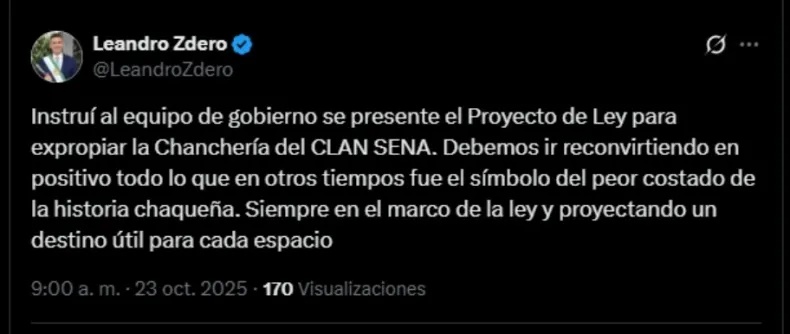 A través de sus redes sociales, Zdero expresó que la iniciativa busca “transformar en positivo lo que en el pasado fue un símbolo de lo más oscuro de la historia chaqueña”, y aseguró que el proceso se realizará “dentro del marco de la ley y con un fin social útil”.