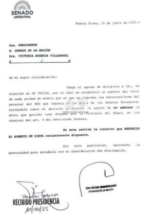 La decisión se da luego de que la presidenta del Senado, Victoria Villarruel, resolviera habilitar a cada senador de manera individual a aceptar o no el incremento de sus haberes, desmarcándose de la controversia pública que volvieron a generar las dietas parlamentarias.